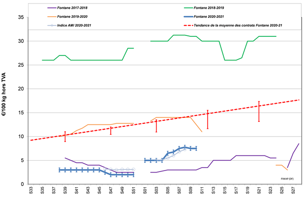 Pour livraison différée à mai - juin, des offres fermes entre 13,00 et 14,00 €/q restent formulées, principalement pour Fontane.