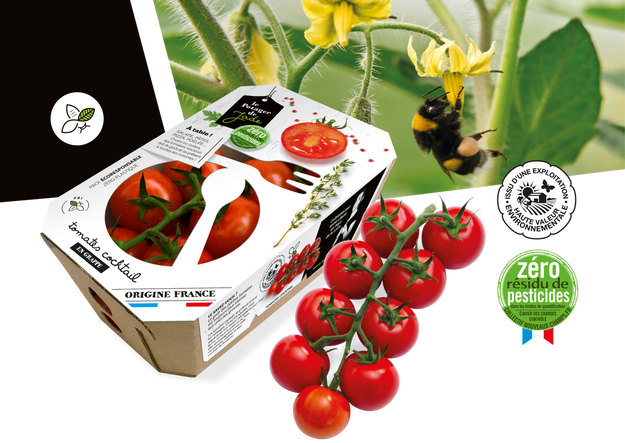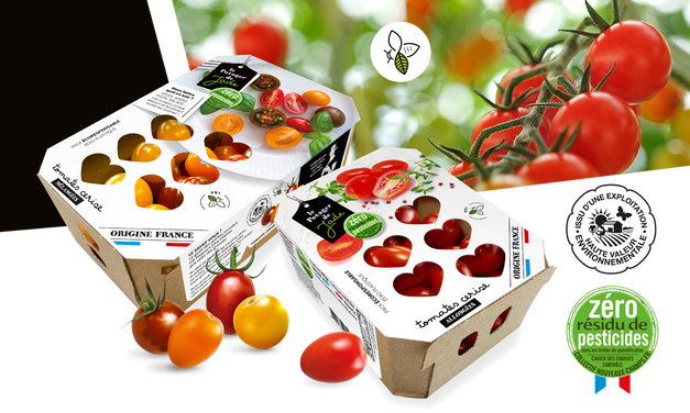 Emballées sans un gramme de plastique, les tomates cocktail et tomates cerises affichent clairement la logique écoresponsable qui sous-tend leur production sans pour autant oublier de séduire le consommateur final.