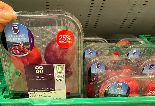 Prunes sud-africaines dans un supermarché du Royaume-Uni le mois dernier (photo : Hortgro).
