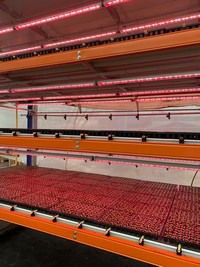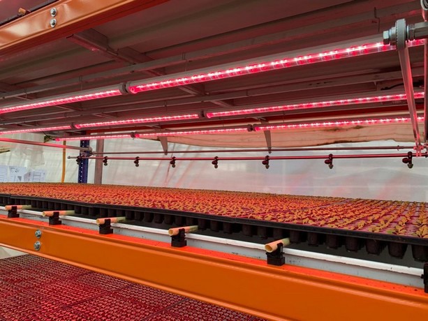 L'entreprise d'éclairage a développé un système de culture multicouche en collaboration avec Meteor Systems : une piste automatisée, y compris des rampes de pulvérisation. Au cours du dernier trimestre, des tests intensifs ont déjà été réalisés avec un cultivateur qui travaille avec des gouttières flottantes. « Nous avons 120 000 boutures dans l'installation d'essai. En plusieurs couches, bien sûr, parce que sinon, ce serait trop cher en termes d'espace au sol. Maintenant, vous pouvez cultiver suffisamment de boutures sur quelques mètres carrés pour remplir un tiers du jardin ».