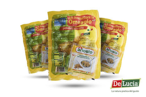 Les pommes de terre vapeur de l'Italien Domenico De Lucia sont un succès ; incontournables dans les rayons fruits et légumes de la grande distribution. La simplicité est associée à une chaîne d'approvisionnement contrôlée et au traitement qui accompagne la gamme de produits prêts à consommer. L'entreprise italienne De Lucia les propose en paquets de 500 grammes, accompagnés d'un sachet gratuit de 10 grammes du célèbre assaisonnement Arisoto pour pommes de terre.
