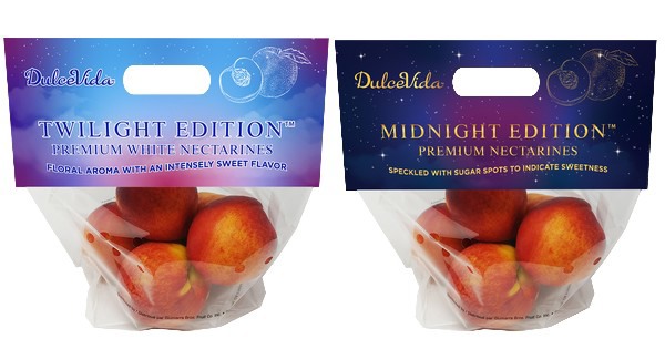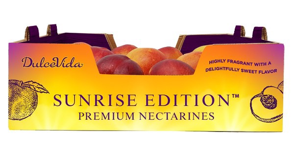Les nectarines DulceVida de Giumarra, cultivées en Californie, sont disponibles dans des boîtes en carton ondulé et dans des sacs en plastique. Les boîtes sont disponibles en options de 2,5 (1,1 kilo) et 4 livres (1,8 kilo), tandis que les sacs sont disponibles en option de 2 livres (900 grammes).