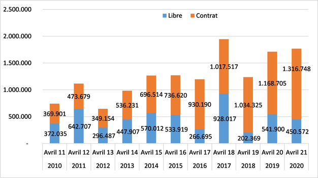 Graphique 7 : Proportion volumes contractés et volumes libres des stocks au 1er avril