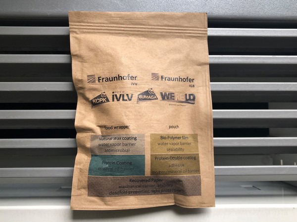 Fraunhofer Institute for Process Engineering and Packaging IVV ainsi que le Fraunhofer Institute for Interfacial Engineering and Biotechnology IGB viennent de présenter une solution innovante et durable pour l'emballage alimentaire. Comme dans le cas d'un emballage classique, il permet de conserver la fraîcheur des aliments plus longtemps. Le nouvel emballage ne contient toutefois aucun plastique. Après utilisation, il peut être recyclé sans problème.
