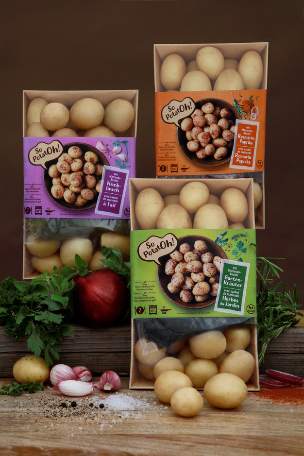 Il y a un an à peine, la gamme de produits So PotatOh! faisait son entrée dans le commerce de détail suisse dans certains magasins pilotes des coopératives Migros Aar, Bâle, Lucerne et Neuchâtel-Fribourg. Dès le début, les trois variétés Romarin-Paprika, Herbes du jardin et Ail ont rencontré un vif succès auprès des consommatrices et consommateurs suisses.