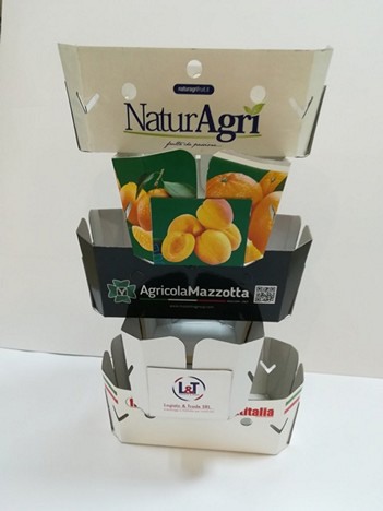 « Il existe un vaste choix de barquettes en carton compostable et recyclable (125 g à 2,5 kg) parfaites pour les cerises, les abricots, les raisins de table, les fraises, le fenouil, les tomates et les poivrons. Ils sont idéaux pour le secteur des produits frais et pour le stockage dans les unités. Ils sont imprimés en offset avec des machines à haute définition et peuvent être personnalisés avec des poignées ou des couvercles, une solution appréciée par les grandes chaînes de distribution pour éviter que les produits ne soient touchés par les consommateurs finaux et utile pour organiser les sections de produits frais. »