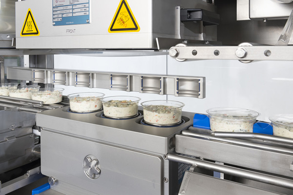 La ligne Tramper S-340 que Mata a choisi, est une ligne d’operculage de barquettes à servocommande entièrement automatisée. Elle convient pour le dépilage, remplissage, scellage, couverclage de pot d’un diamètre de 80 mm jusqu’à des barquettes de salades-repas de 180 x 180 mm. Il s’agit d’une ligne complète, polyvalente, qui peut être configurée de manière très flexible. L’ensemble de la chaîne est muni d’outillages facilement interchangeables, sans qu’aucun outil ne soit nécessaire. En outre, la doseuse Leonhardt AG1 mobile peut être associée à la ligne d’operculage. Un système d’étiquetage ELS supérieur et inférieur est intégré et à la fin de la chaîne, les barquettes conditionnées sont évacuées vers une table tournante, prêtes pour le transport.