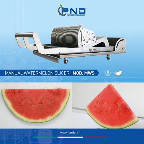 « En plus des machines industrielles, les clients demandent souvent de petits outils tout aussi fiables et robustes. C'est pourquoi nous avons développé deux nouvelles machines de découpe pour les ananas et les pastèques », rapporte Virginia Cascella, responsable des exportations de PND.