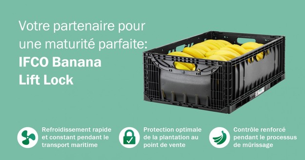 « Chez IFCO, nous avons de nombreuses années d’expérience dans la conception d’emballages dédiés au transport des bananes depuis le lancement de la caisse Caja Oro aux États-Unis il y a environ 15 ans. Avec le Banana Lift Lock, nous nous appuyons sur cette expérience pour présenter un bac qui offre des avantages supplémentaires pour le transport de bananes fraîches de la plantation au point de vente, souvent situé à des milliers de kilomètres », souligne Michael Pooley, PDG d’IFCO.