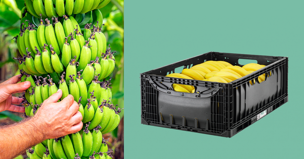 Spécialement conçu pour le transport sécurisé des bananes tout au long de la chaîne – de la plantation jusqu’au point de vente – ce bac plastique réutilisable offre de nombreux avantages pour le transport souvent très long des fruits au cours de leur importation : ventilation supérieure pour un refroidissement plus rapide et un mûrissage optimal, résistance optimisée, parfaite protection des produits et durabilité tout au long de la chaine d’approvisionnement.