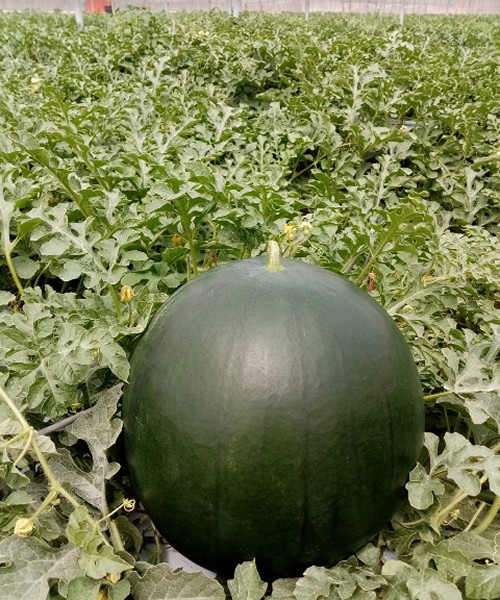Les pastèques ont une écorce noire, une chair rouge foncé et peu de graines comestibles. La variété, appelée Giotto en raison de sa forme ronde parfaite, a été développée par Lamboseeds.