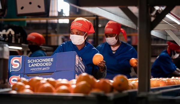 Récolte de Navels dans la vallée de Loskop, où l'industrie des agrumes fournit un emploi important (photos fournies par Schoonbee Landgoed)