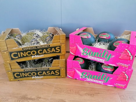 Cinco Casas, la principale marque du groupe Cincofresh, a donné le coup d'envoi de la saison estivale des deux fruits d'Almería et de Murcie au mois de mai. Vers la mi-juillet, ils commenceront à récolter les melons et les pastèques dans la région de La Mancha, où ils possèdent leurs propres champs.