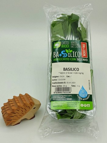 « Le basilic sans nickel enrichi en sélénium », explique Siro Ricci, directeur commercial d'Orto Ricci, « est une ligne de produits respectueux de l'environnement. Elle a été conçue pour répondre aux demandes d'un marché de plus en plus exigeant et pour satisfaire les consommateurs soucieux de la santé, de la protection de l'agro-système et des ressources naturelles, ainsi que des effets bénéfiques des aliments. Seulement 12 grammes de feuilles de basilic enrichies en sélénium fournissent 57 mcg (microgrammes) de cet élément. La quantité quotidienne de sélénium recommandée pour un adulte est de 55 mcg. Ce basilic biofortifié est un produit qui peut être consommé par tous, même par ceux souffrant d'allergies ou d'intolérances au nickel ».
