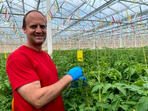 La première serre dans laquelle Toby Wright a cultivé des tomates avait une hauteur de gouttière de 3,5 mètres. Depuis lors, il suit de très près l'évolution du secteur et profite des opportunités offertes par l'utilisation de nouvelles techniques pour chercher à être plus compétitif. « Il est crucial de maintenir une logique dans notre approche de la culture ». Dans sa serre Les Serres des Grands Lacs, il cultive actuellement des tomates dans le Sud-Ouest de la France, pour la coopérative Les Paysans de Rougeline.