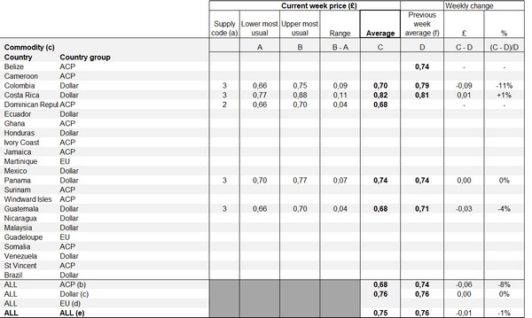 La semaine dernière, le prix des bananes de Colombie a chuté de 11 %, tandis que celui des bananes du Costa Rica a augmenté d'un penny.