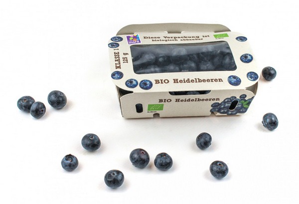 Au cours de la prochaine saison, Eosta / Nature & More remplacera au moins 500 000 contenants en plastique de myrtilles par des boîtes en carton. Le nouvel emballage a été développé en coopération avec un grand client et comporte toujours une petite fenêtre en bioplastique. Eosta a également développé des options totalement exemptes de plastique. En collaboration avec les détaillants de toute l'Europe, Eosta espère économiser des millions de boîtes en plastique pour les myrtilles dans les années à venir.