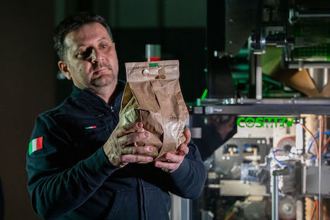 « L'association de Cosmec et InKarta est le résultat de recherches et de nombreux tests effectués par Policarta AFC avec NoW paper sur les principales marques du marché des AGF et au-delà (Jasa, Ulma, Sorma, Gna, Ilapack, Martini, GKS, PFM, Masterpack, Redpack, Gruppo IMA). Cela nous a permis de concevoir la nouvelle M/C verticale avec de bonnes performances par rapport aux machines similaires et avec une capacité de production moyenne de plus de 35 paquets par minute. »