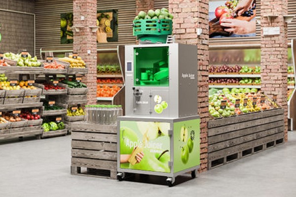 Apple Juicer de Zummo apporte du jus de pomme frais au consommateur. Cette machine a été développée spécialement pour les supermarchés, afin que leurs clients puissent obtenir du jus de pomme de la plus haute qualité et fraîcheur de la manière la plus simple. De plus, cette machine offre une expérience d'achat innovante aux clients, ce qui permet de les fidéliser et d'augmenter les revenus de l'entreprise.