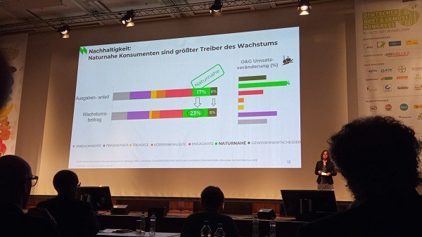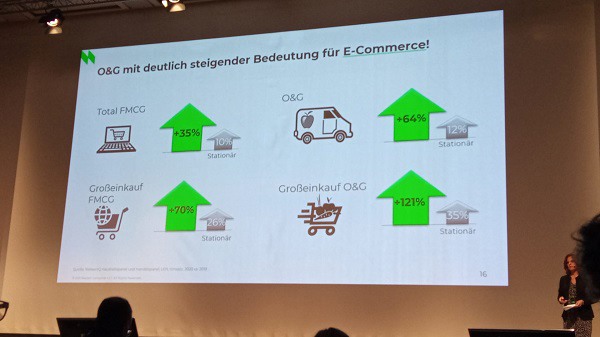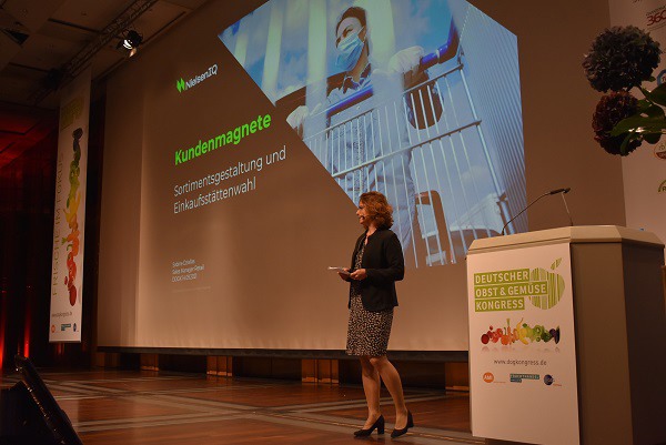 Lors du congrès allemand des fruits et légumes qui s'est tenu cette année, Sabine Dziallas a présenté les derniers résultats de l'étude NielsenIQ. Selon NielsenIQ, une augmentation de la demande de produits alimentaires avait été constatée, tandis que la fréquence d'achat était en baisse. Par rapport à 2019, la croissance des ventes a « explosé », notamment en raison de la constitution de réserves à la mi-2020. .