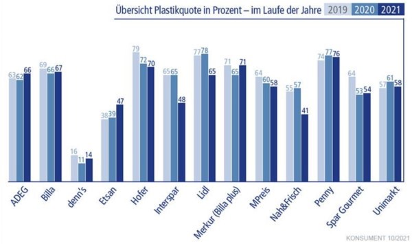 L'Association pour l'information des consommateurs enquête depuis 2019 sur la proportion de fruits et légumes emballés dans les supermarchés ou les magasins discount. La moyenne était supérieure à 60 %. À l'époque, les détaillants souhaitaient réduire la teneur en plastique. Mais une nouvelle enquête montre que ce taux est toujours de 57 %.