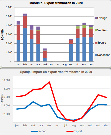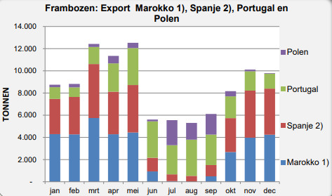 Framboises : Exportation Maroc 1), Espagne 2), Portugal, et Pologne.
