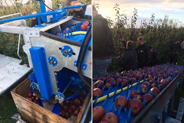 « Nous avons fait un essai chez Vissers Fruit avec Delcorf. Ils ont ensuite utilisé la machine pour récolter la Conference et l'Elstar également. Nous l'avons améliorée de plusieurs façons au cours des dernières semaines. Aujourd'hui, nous avons une machine dont nous sommes vraiment satisfaits », déclare Hans van Blokland d'Agricom.