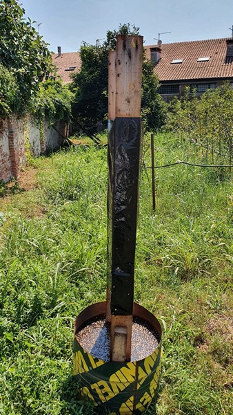 « La partie restante du piège peut être fabriquée soi-même. Certaines personnes utilisent des palettes comme support, d'autres construisent une structure avec des tiges de fer. L'important est qu'il y ait en dessous un grand bassin avec de l'eau et du détergent pour que les insectes, en tombant, restent coincés et meurent. Le réservoir situé en dessous peut être fabriqué à partir de n'importe quel matériau recyclé : vieux récipients, citernes ou autre, car l'efficacité est la même quelque soit le matériau », ajoute Gasperoni.