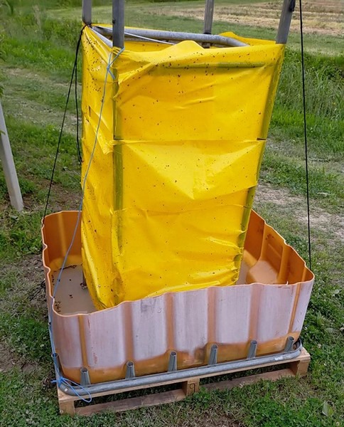 « Nous avons commencé à proposer ce type de piège au printemps dernier. A L'Agrotecnica, nous proposons un tissu visqueux jaune pour le printemps, lorsque les juvéniles sont attirés par les couleurs vives, puis nous passons au tissu noir pour piéger les adultes. Cependant, le jaune peut aussi être choisi pour la fin de l'été, car il fonctionne quoi qu'il arrive », explique le technicien Gianni Gasperoni.