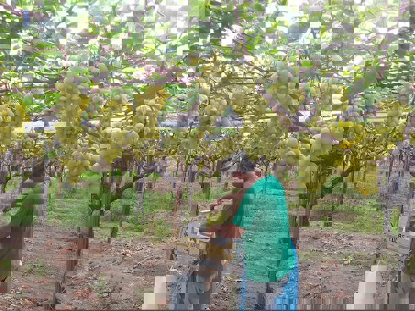 Cette année, ce sont 1 500 tonnes de Lucas Oro qui sont attendues. Soit des volumes 30 % plus élevés que l’année passée. Une récolte généreuse d’autant plus dans un contexte où les aléas climatiques ont beaucoup impacté la production de raisin cette année : « Toujours dans cette démarche de qualité, nous avons souhaité couvrir nos vergers en les équipant de filets anti-pluie et de bâches. Cela nous permet d’être beaucoup moins tributaires à la météo. Nous gérons l’ensoleillement, réduisons les écarts de température, maîtrisons l’apport en eau. Cette année par exemple où nous avons eu des pics de chaleur atteignant les 52°C, nous avons pu protéger la vigne du soleil tout en permettant une circulation de l’air. Ce qui nous a permis d’obtenir une qualité de raisin exceptionnelle cette année, atteignant les 22 degrés Brix. Nous pouvons également récolter au moment où nous le souhaitons et lorsque le raisin arrive à maturité. Car un raisin qui est récolté à maturité, caractérisé par une rafle boisée, conserve toutes ses qualités nutritionnelles. Cette gestion de la vigne réduit considérablement les problèmes de qualité ».