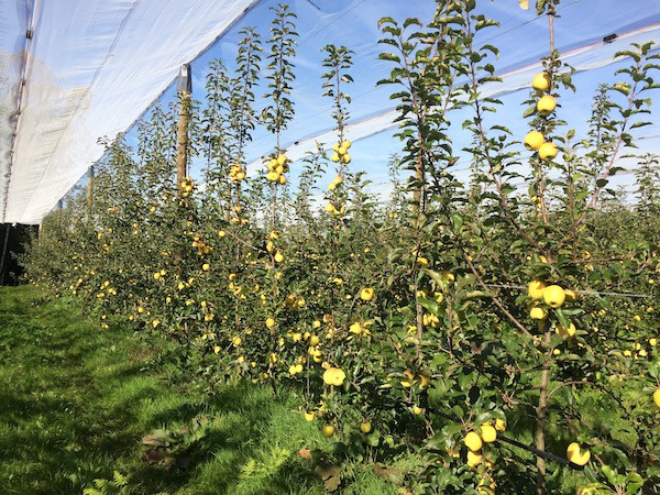 Lory® Inogocov est une variété de pomme jaune. « Elle a un bon comportement global que ce soit au niveau de la productivité, de la conduite, du stockage et de la qualité gustative. Sa chair est ferme et juteuse. »
