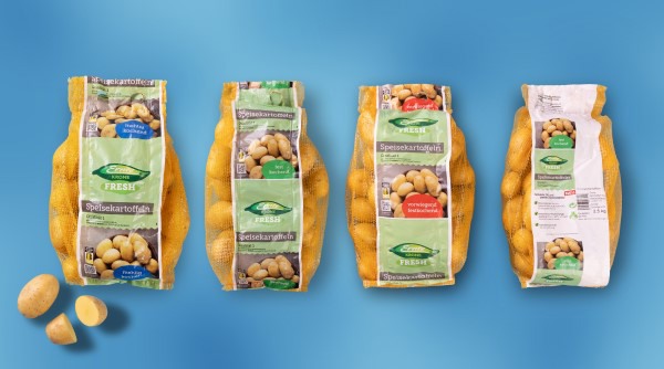 En plus des pommes de terre de la marque BIO SONNE de NORMA, les clients diminuent désormais également leurs déchets en achetant la marque ERNTE KRONE. Grâce aux nouveaux filets CLAF® carry-fresh optimisés, jusqu'à 50 % d'emballage sera économisé. En utilisant un seul type de matériau pour le filet et la bande lors de la production, le nouveau conditionnement facilite également l'élimination dans les ordures ménagère, indique l'entreprise.