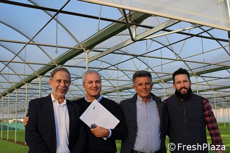 Sur la photo (de gauche à droite) : Antonio Salvatore, président d'Op Oasi, Vito Busillo, président du Consorzio di tutela rucola IGP, le propriétaire de l'entreprise Sante Giuliano, Robert Marchesi, agro-manager d'Op Oasi.