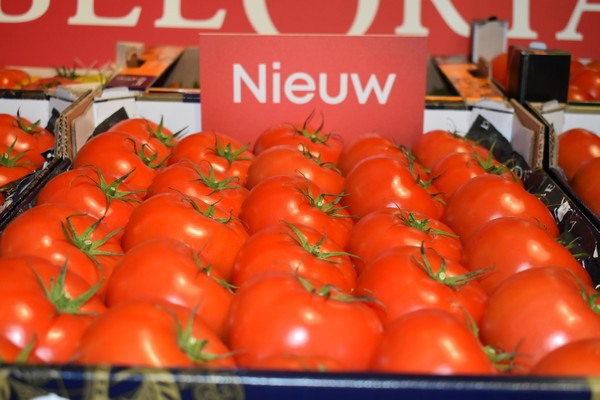Première étape de l'exposition de produits : les tomates. « Nous testons plus de 100 nouvelles variétés chaque année. Et avec un peu de chance, une ou deux entrent en production », explique Glenn Sebregts, de BelOrta. « Nous sommes toujours à la recherche de la dernière solution pour ne pas nous retrouver à la traîne. »