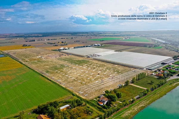 Les deux nouvelles serres fer-verre Ostellato 3 et Ostellato 4 font partie de l'ambitieux projet de Gruppo Fri-El, l'un des principaux producteurs d'électricité à partir de ressources renouvelables (vent, biomasse et biogaz) en Italie, qui a fondé Fri-El Green House en 2015.