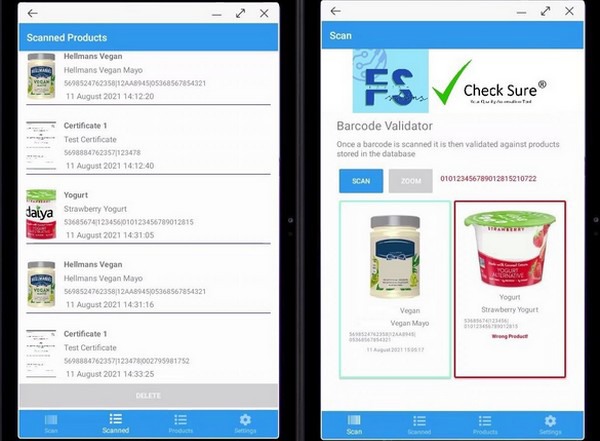 Le scanner mobile de validation des codes à barres est entièrement portable et très robuste, et il ne se contente pas de lire les codes-barres, il peut également les valider. Les informations sur les produits sont saisies dans la base de données centrale de l'usine principale. Il s'agit d'informations telles que les photos des produits, les codes-barres des emballages primaires et secondaires, etc. L'appareil est synchronisé avec la base de données principale, ce qui garantit que toutes les informations sont désormais contenues dans l'appareil. Une fois sur le terrain, si par exemple le mauvais emballage est utilisé, un avertissement rouge s'affiche à l'écran lorsque le code-barres est scanné.
