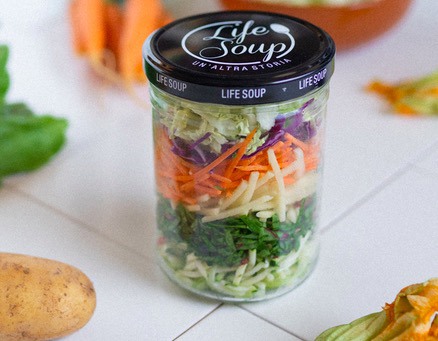 Des légumes frais, coupés, présentés dans un bocal en verre transparent. C’est tout. Une idée simple mais innovante qui permet de déguster une soupe fraîche et saine en peu de temps. Life Soup est le nouveau produit de Bontà Verde Agroama, disponible dans cinq versions.