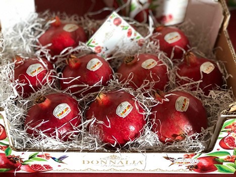« L'autre produit qui nous donne d'excellents résultats est la grenade, cultivée dans le centre et l'est de la Sicile. La douceur de ce produit, qui dépasse également 19 degrés Brix de teneur en sucre, est excellente, et nous la proposons dans des boîtes 30x40 attrayantes avec les fruits placés sur un lit de copeaux blancs. Les prix varient selon le calibre de 1,50 € à 2,00 €/kg en gros. »