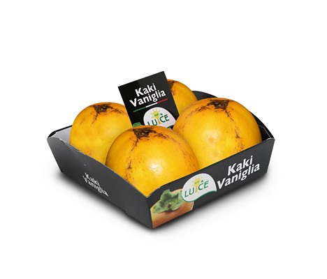 Le kaki Vaniglia est une variété traditionnelle et ancienne de Campanie, caractérisée par sa peau fine, jaune-orange, et sa chair très ferme, croquante, sucrée et au goût de vanille, d'où son nom. Contrairement aux autres kakis, il peut être consommé immédiatement après la cueillette. Lorsque le fruit est mûr, la teneur en sucre peut provoquer des taches sombres sur la peau qui ressemblent à une toile d'araignée. Il ne s'agit en aucun cas d'un défaut, mais d'une caractéristique distinctive de ce kaki. AOP Luce le vend en vrac ou en barquettes de 4, qui comprennent également un mini livret d'informations.