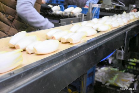 Une fois les racines expulsées dans la chambre noire, elles sont coupées, triées et ensuite emballées. Le temps passé et la faible durée de vie en rayon font de l'endive un produit extrêmement exigeant.