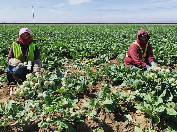 Les stocks de chou-rave de Californie s'avèrent abondants en ce moment. Matt Hiltner, de la société Babé Farms, Inc. basée à Santa Maria, en Californie, qui a surnommé ce légume à la forme inhabituelle « Alien veg » en raison de son apparence, dispose de volumes de choux-raves verts et rouges dans les tailles petite et moyenne (en bottes) et en vrac (sans fanes). « Grâce au temps exceptionnellement chaud que nous avons connu ces deux dernières semaines, l'offre est encore meilleure que l'année dernière à la même époque », explique M. Hiltner.