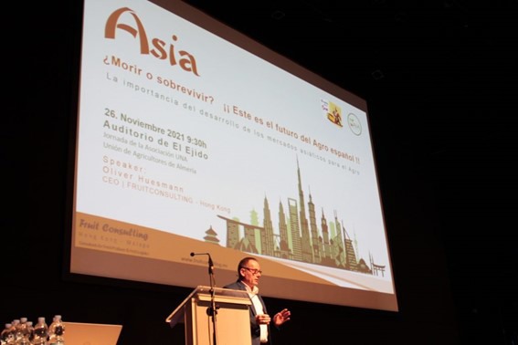L'association UNA (Unión de Agricultores de Almería) est sûre et les participants à la conférence du 26 novembre l'étaient aussi : « Le marché asiatique est une réelle opportunité pour la vente de fruits et légumes et nous devons nous libérer de la dépendance à 96 % du marché européen », a affirmé Oliver Huesmann, initiateur de FRUITS FROM SPAIN.