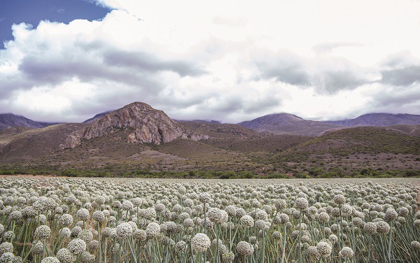 La période de pollinisation des oignons - trois semaines qui viennent couronner un processus long de 23 à 28 mois - est une période tendue. Le Klein Karoo a connu beaucoup de pluies récemment, après des années de sécheresse, mais elles ont été accompagnées de dégâts causés par la grêle.