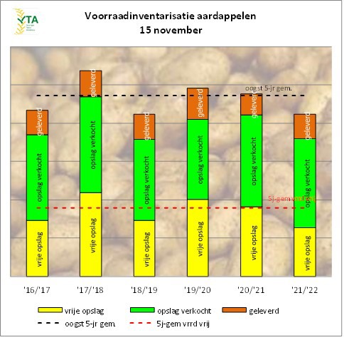 Aux Pays-Bas, l'Union des producteurs agricoles (VTA) a effectué un premier inventaire des stocks de pommes de terre de consommation. Les données publiées indiquent des stocks bien inférieurs à ceux de la saison dernière (14,6 %) et même inférieurs à la moyenne quinquennale (11,3 %).