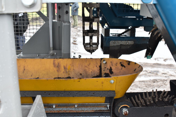 Pour favoriser l’obtention d’une qualité optimale de l’asperge, les détecteurs se retirent avant d’entrer en contact avec le légume. Ce dernier est ensuite prélevé verticalement avec l’amas de terre qui l’entoure. Amenée sur le tapis convoyeur par le bras de cueille, l’asperge se retrouve dans un bac de stockage d’une capacité de 250kg lorsque la terre, elle, retourne sur la butte qui est reformée. Doté de deux détections différentes de 6 cm d’écart sur un même axe vertical, la coupe des asperges est homogénéisée pour obtenir une longueur d’environ 22 cm. Quant à la qualité obtenue, les producteurs hollandais et allemands ayant testé la machine affirment que les asperges récoltées industriellement sont moins violettes, moins fleuries et moins courbées que celles récoltées manuellement.
