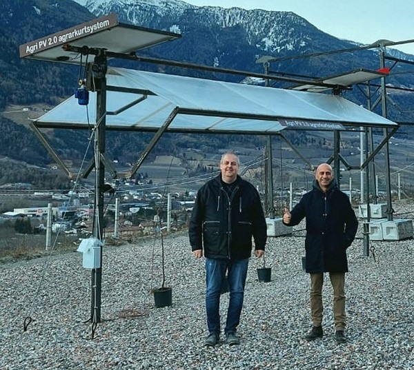 D'ici la deuxième dizaine du mois de février, la première installation pilote « Agri-PV Protection » devrait être achevée à Naturno (Bolzano). Ce terrain d'un hectare accueillera une culture de raisins, de pommes et de mûres, protégée par un système de toiture comprenant des panneaux solaires haute technologie. Leur mission est de combiner la production d'énergie solaire issue de sources renouvelables avec l'énergie agricole, afin que les exploitations agricoles puissent obtenir un revenu supplémentaire grâce à la vente d'énergie, sans dénaturer le paysage et réduire les sols fertiles.