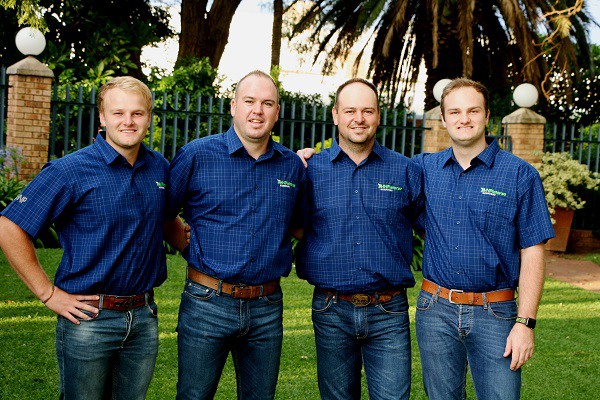 Hardus Pieterse, Gert Smit, Christoff Smit et Henco Pieterse de l'entreprise Hendri Pieterse Boerdery à Groblersdal, Limpopo.