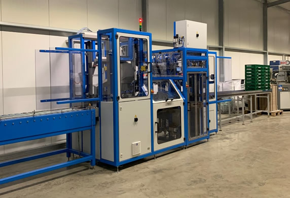 « Un module qui place automatiquement les inlays/inserts dans les boîtes dépliées. » Placer ces insertions à la main est tout aussi long et fastidieux que de déplier les caisses. Reintjes Systems a relevé le défi et, en quelques mois, a développé le premier module innovant.