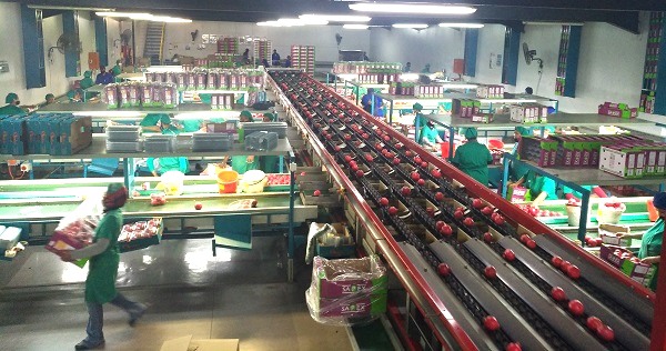 Des prunes African Delight sur la ligne de conditionnement de Sonlia.