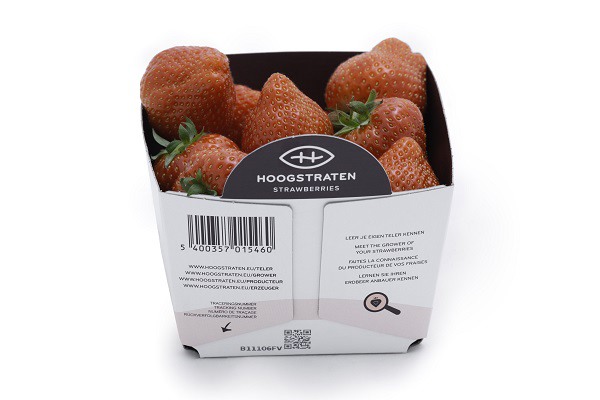 Chaque barquette en carton porte un code QR unique qui permet aux acheteurs d'accéder directement aux informations du producteur de fraises via leur smartphone. Les deux petits côtés de chaque barquette en carton portent également ces codes. « En scannant automatiquement ces codes QR, les barquettes sont associées à un plateau particulier. Nous savons alors exactement quel carton contient quels barquettes. Nous avions encore besoin d'un lien qui montrerait comment une palette pleine de plateaux' arriverait chez un cultivateur. C'est pourquoi un plateau sur chaque palette reçoit une étiquette RFID. »